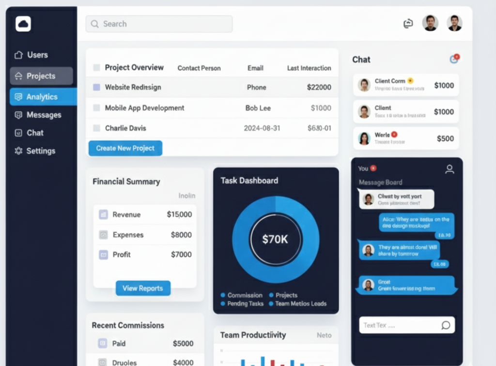 Keep your business organized by managing client profiles, processing invoices, tracking commissions, and maintaining chat context—all in one unified system.