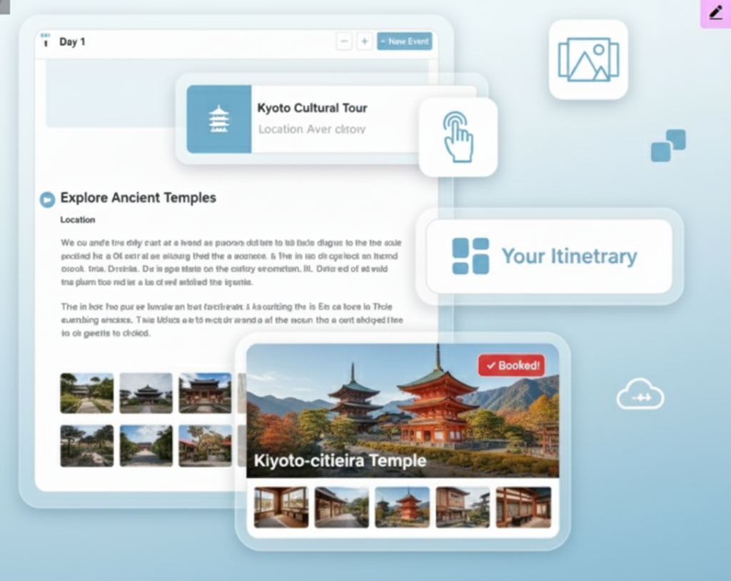 Organize tours, hotels, experiences, and documents in your Library, then drag them into itineraries with ease.
